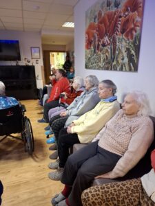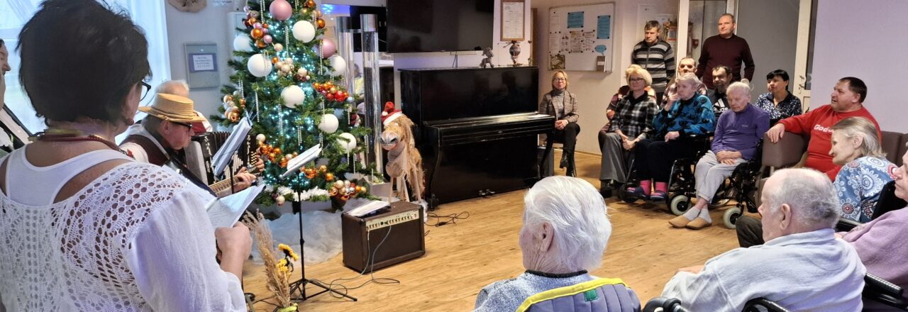Visus sveikino ir muzikinę dovaną dovanojo Elektrėnų kultūros centro pagyvenusių žmonių ansamblis „Smilga“.  Šilti pokalbiai, pasidalinimas prisiminimais vėliau tęsėsi prie arbatos puodelio, gardaus Aukštadvario morkų pyrago .